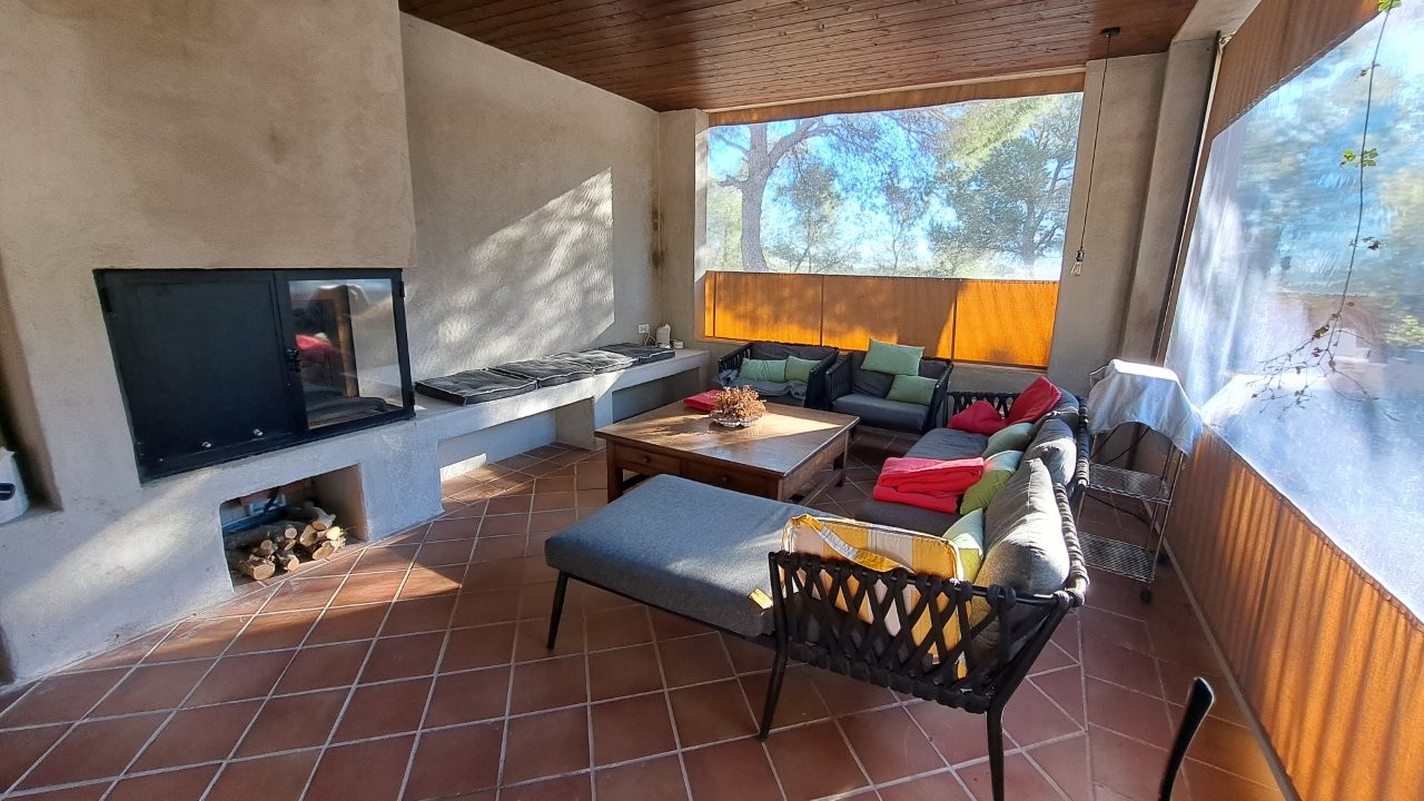 De buiten-shala van Sammati is omgeven door dennenbomen en natuur. Perfect om yoga te beoefenen en in contact te komen met de natuur.