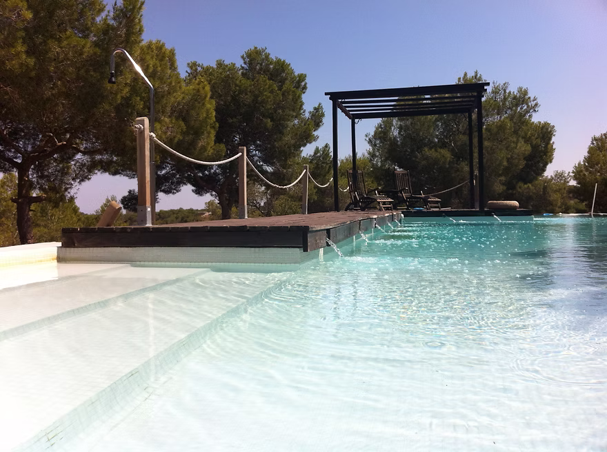 Het zwembad is gevuld met natuurlijk bronwater, vrij van chloor en zout. Perfect voor je huid.